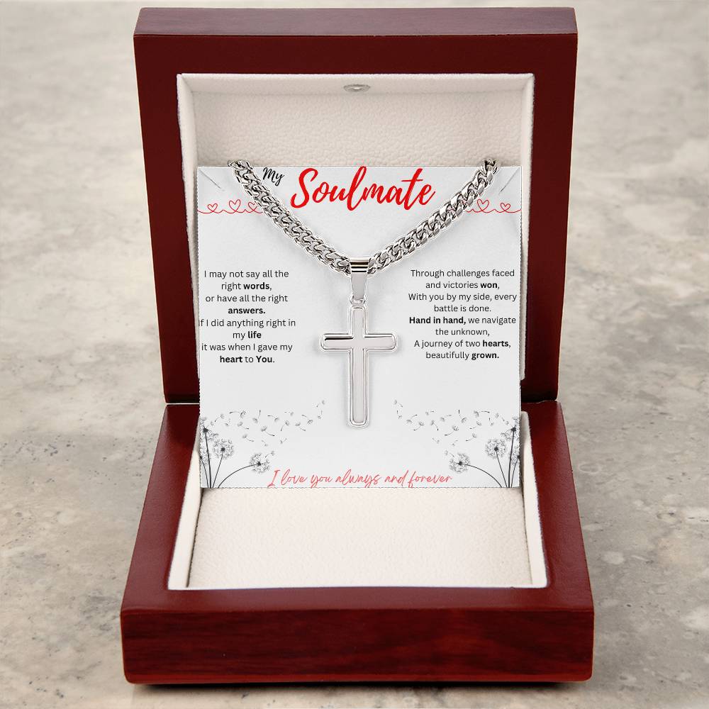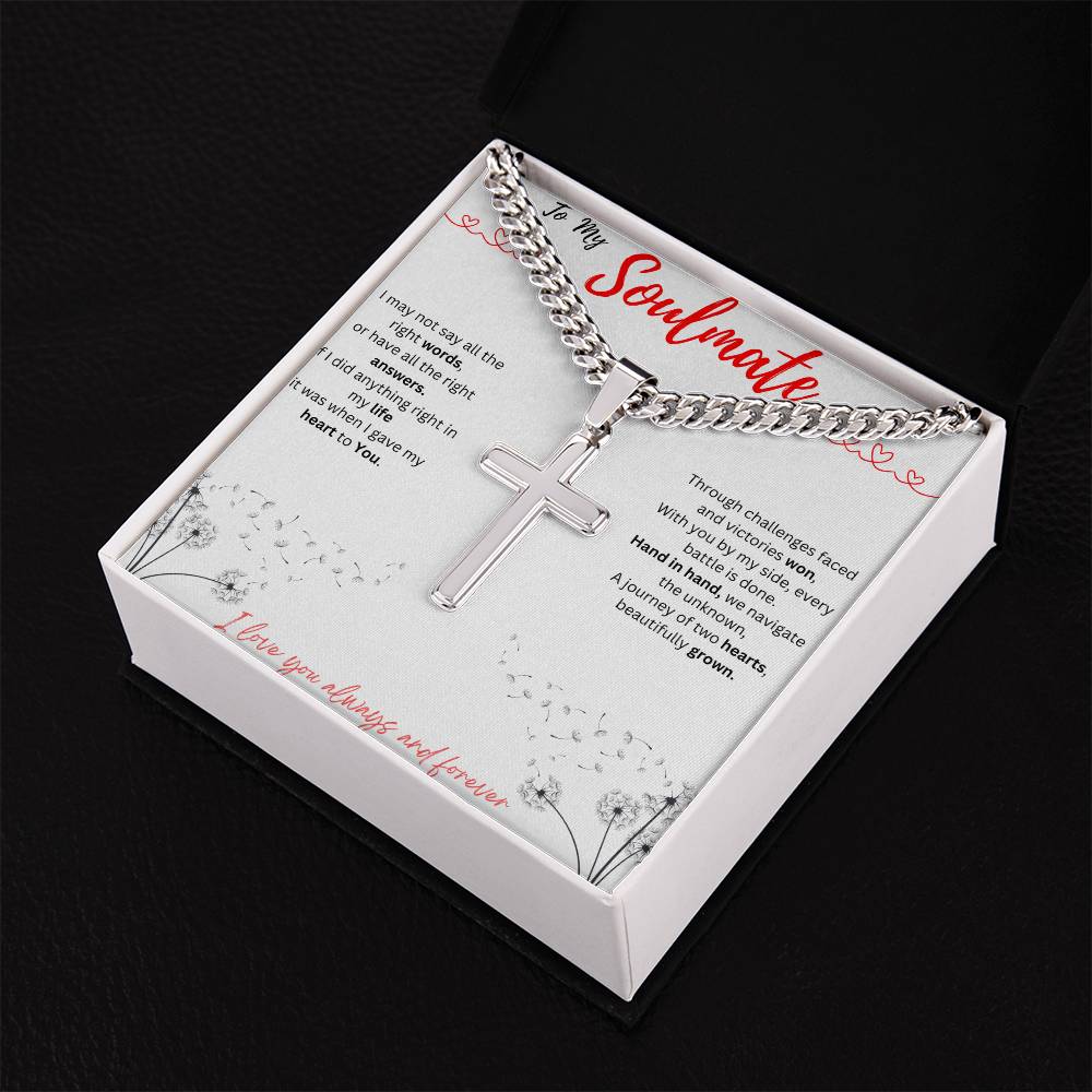Wear your faith proudly with this Cuban Chain with Artisan Cross Necklace. Perfect for special occasions or everyday wear, this makes a wonderful gift idea for you or your loved one. Personalizing the back of the cross pendant will surely make this gift treasured for years to come!
